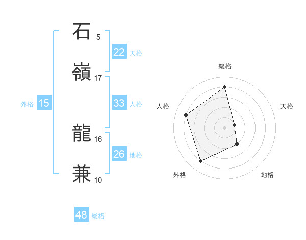 石嶺 龍兼さんの人格は33画の4点!