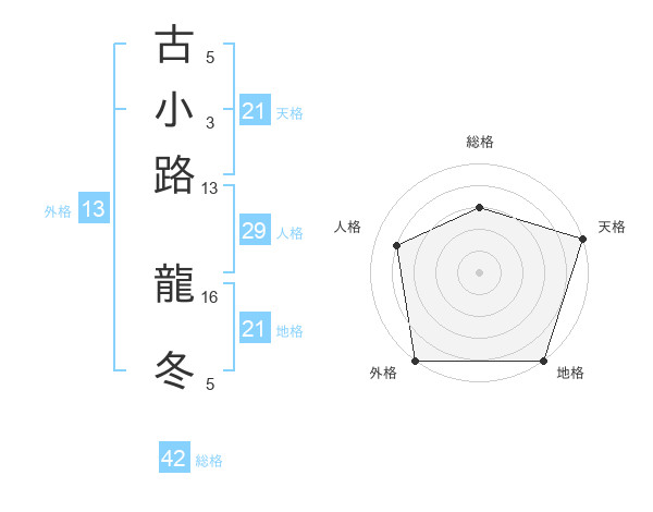 古小路 龍冬さんを姓名の画数から五運を鑑定