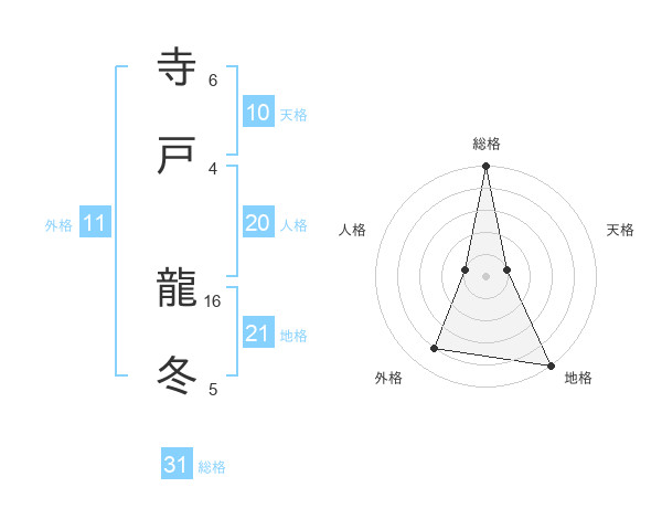 寺戸 龍冬さんの総格は31画の5点!