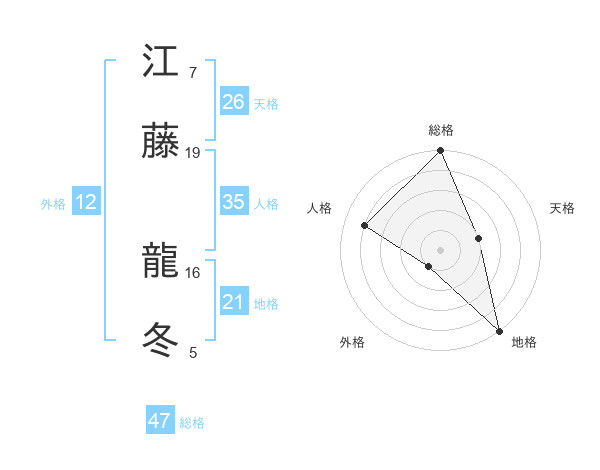 江藤 龍冬さんを姓名の画数から五運を鑑定