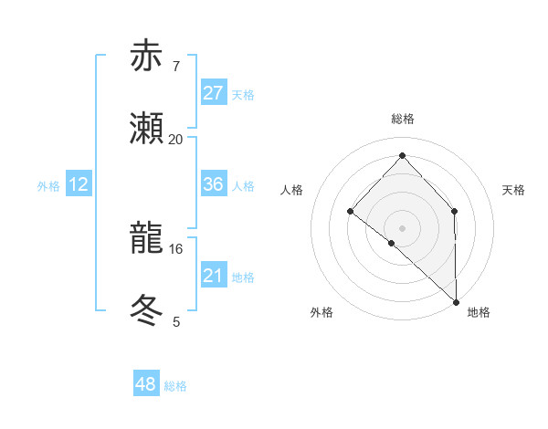 赤瀬 龍冬さんを姓名の画数から五運を鑑定