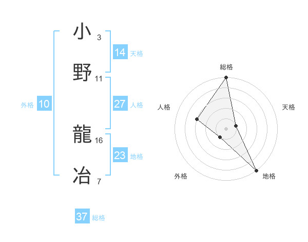 小野 龍冶さんを姓名の画数から五運を鑑定
