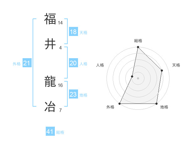 福井 龍冶さんを姓名の画数から五運を鑑定