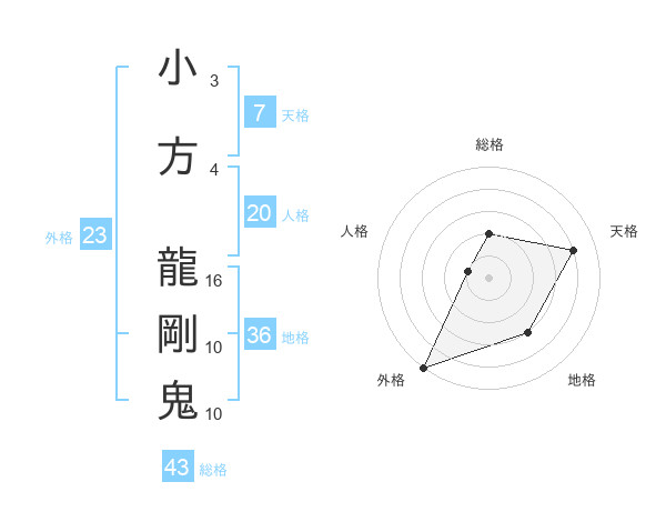 小方 龍剛鬼さんの総格は43画の2点!
