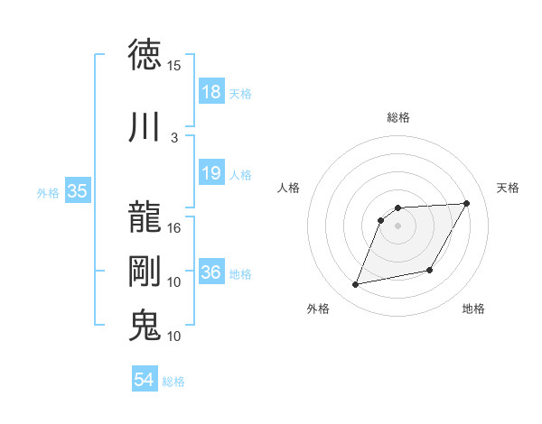 徳川 龍剛鬼さんを姓名の画数から五運を鑑定