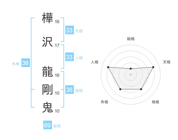 樺沢 龍剛鬼さんの天格は33画の4点!