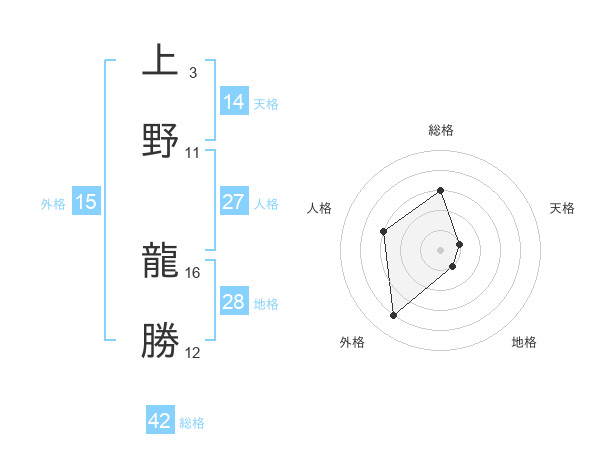 上野 龍勝さんの総格は42画の3点!