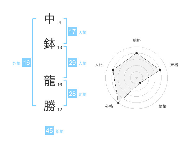 中鉢 龍勝さんを姓名の画数から五運を鑑定