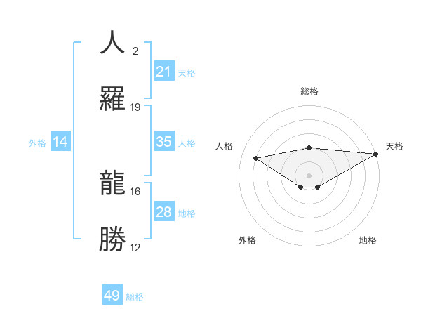 人羅 龍勝さんを姓名の画数から五運を鑑定