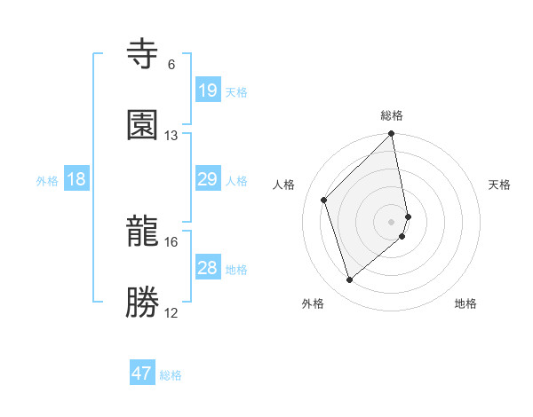 寺園 龍勝さんの総格は47画の5点!