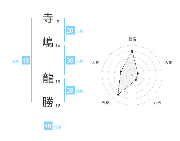 寺嶋 龍勝さんを姓名の画数から五運を鑑定
