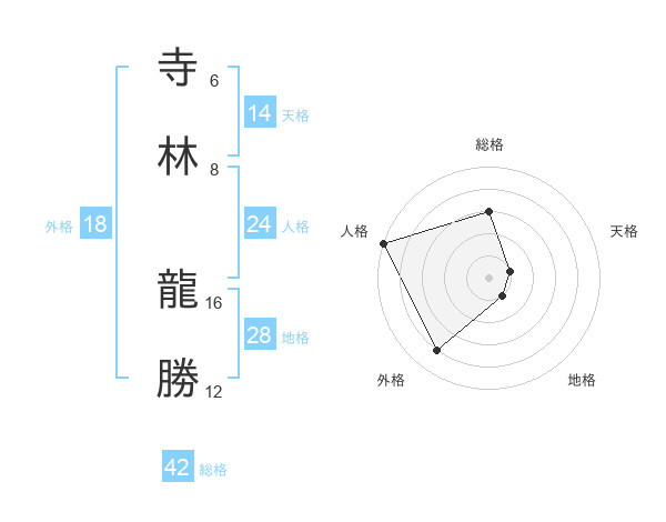 寺林 龍勝さんの総格は42画の3点!