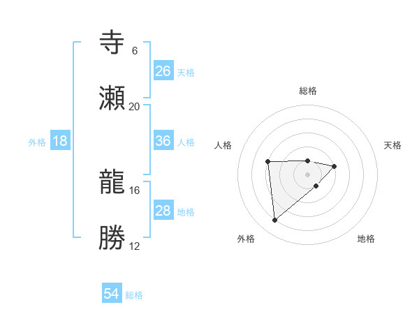 寺瀬 龍勝さんの総格は54画の1点!