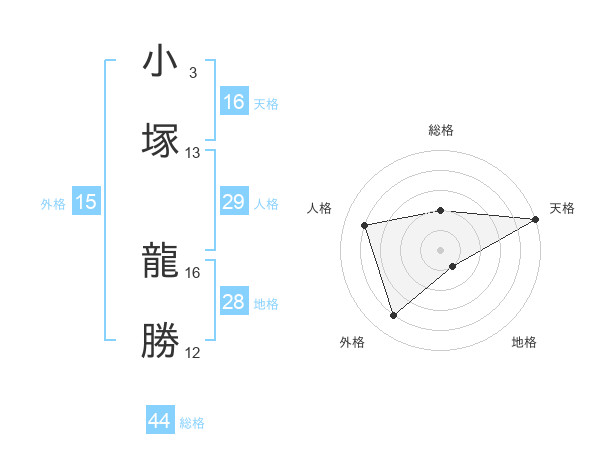 小塚 龍勝さんを姓名の画数から五運を鑑定
