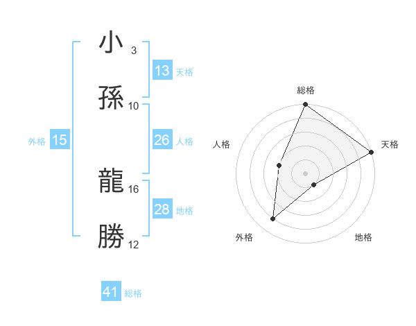小孫 龍勝さんの天格は13画の5点!