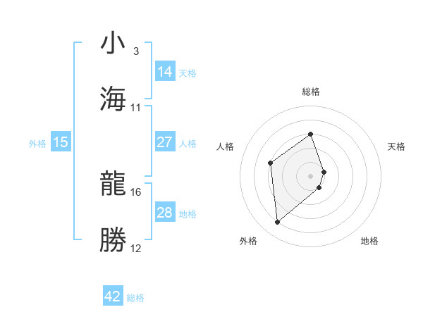小海 龍勝さんを姓名の画数から五運を鑑定