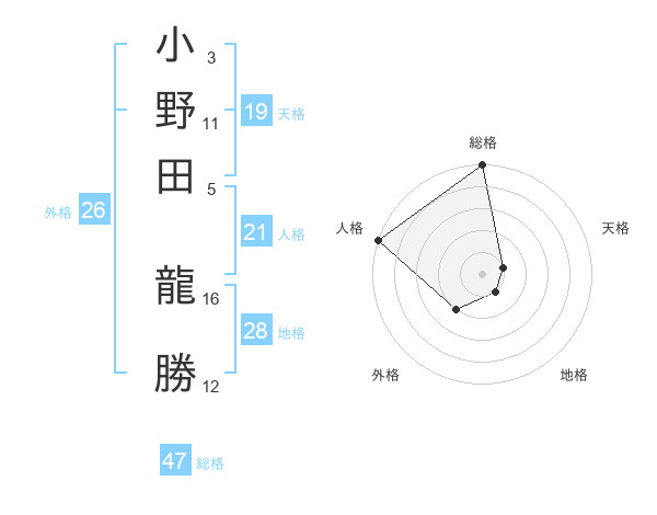小野田 龍勝さんを姓名の画数から五運を鑑定