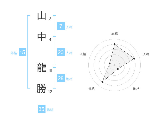 山中 龍勝さんの総格は35画の4点!