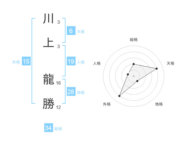 川上 龍勝さんの総格は34画の2点!