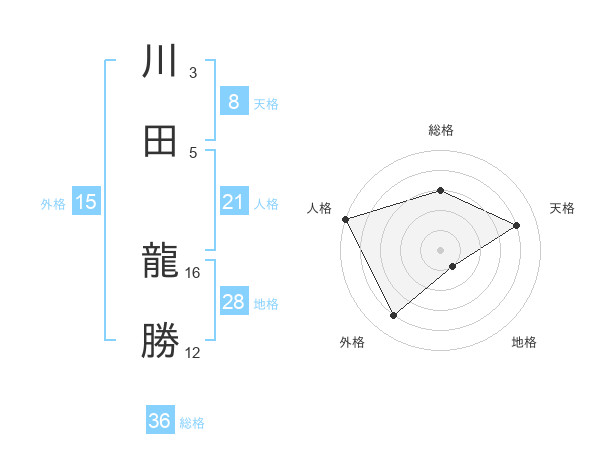 川田 龍勝さんの天格は8画の4点!