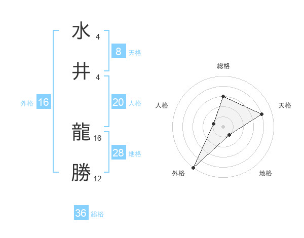水井 龍勝さんを姓名の画数から五運を鑑定