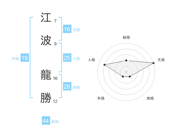 江波 龍勝さんの天格は16画の5点!