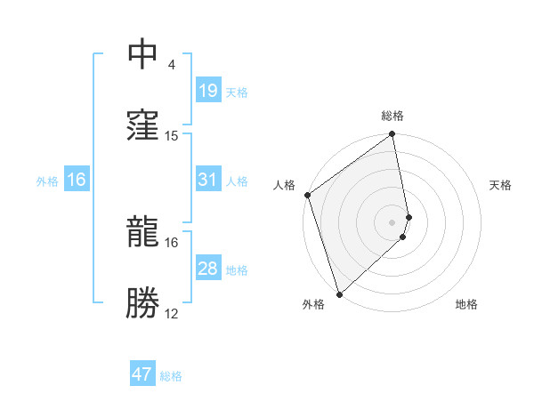 中窪 龍勝さんを姓名の画数から五運を鑑定