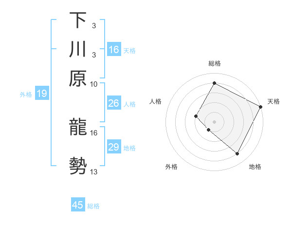 下川原 龍勢さんを姓名の画数から五運を鑑定