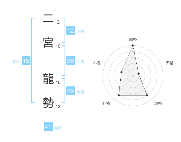 二宮 龍勢さんの総格は41画の5点!