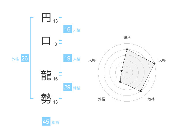 円口 龍勢さんを姓名の画数から五運を鑑定