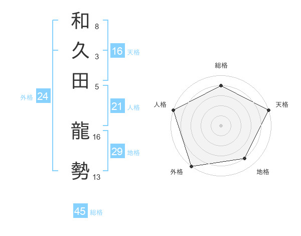 和久田 龍勢さんを姓名の画数から五運を鑑定