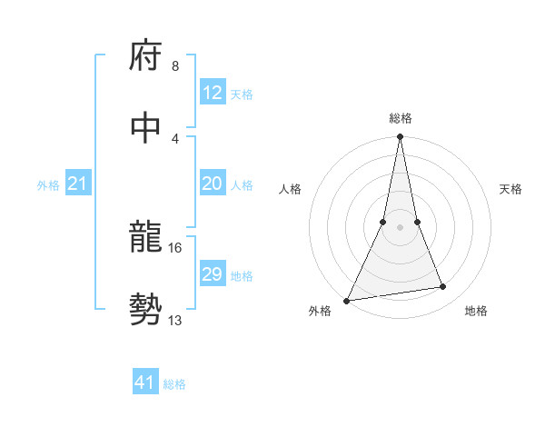 府中 龍勢さんの総格は41画の5点!
