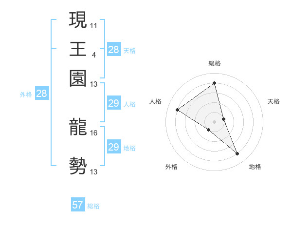 現王園 龍勢さんを姓名の画数から五運を鑑定