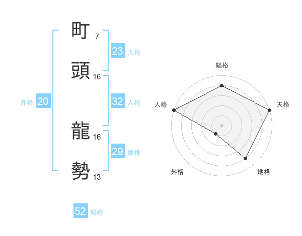 町頭 龍勢さんを姓名の画数から五運を鑑定