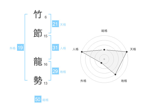 竹節 龍勢さんを姓名の画数から五運を鑑定