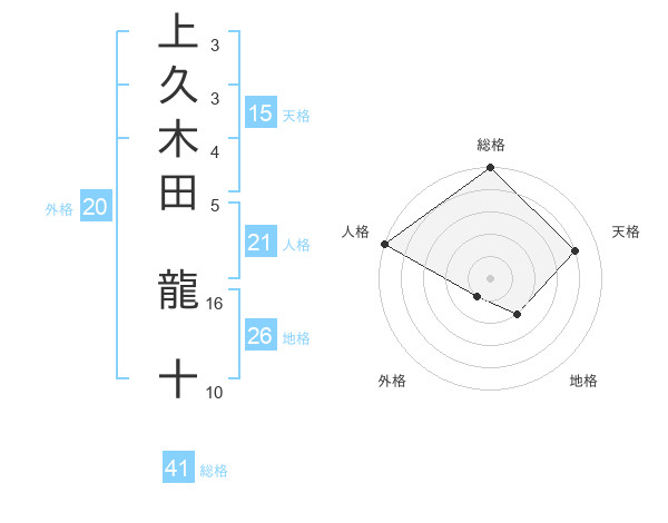 上久木田 龍十さんを姓名の画数から五運を鑑定