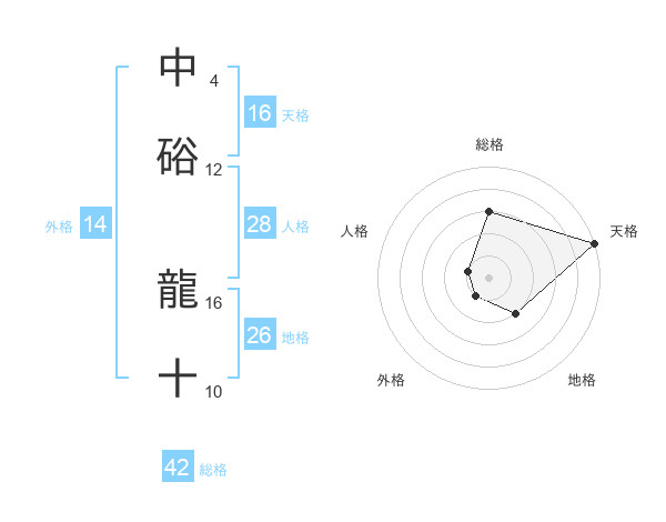 中硲 龍十さんの天格は16画の5点!