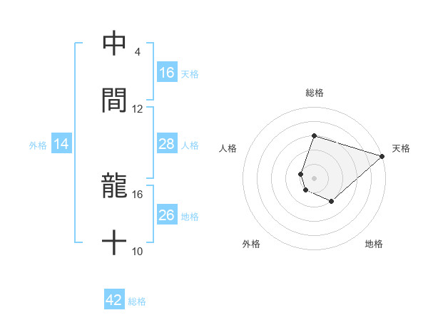中間 龍十さんの総格は42画の3点!