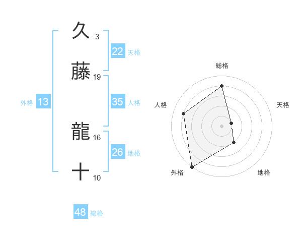久藤 龍十さんを姓名の画数から五運を鑑定