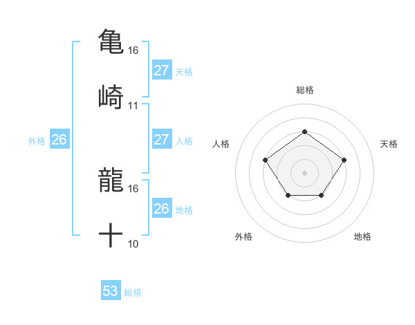 亀崎 龍十さんの総格は53画の3点!