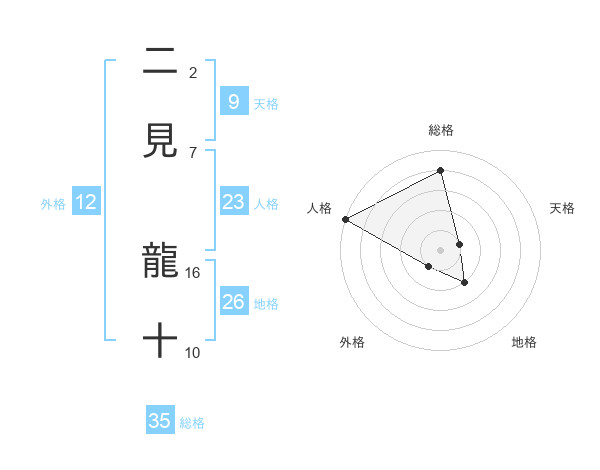 二見 龍十さんの総格は35画の4点!