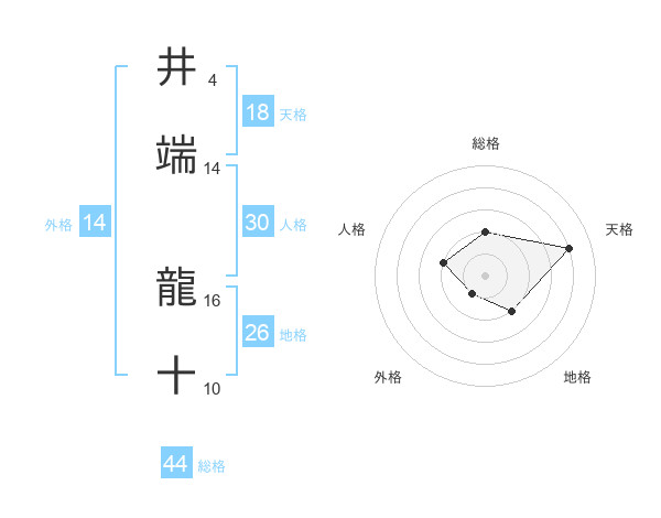 井端 龍十さんの総格は44画の2点!