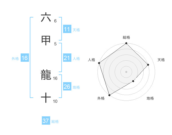 六甲 龍十さんの総格は37画の5点!