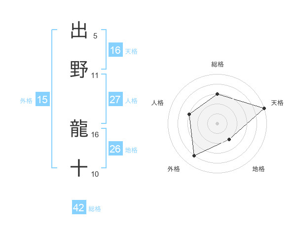 出野 龍十さんの天格は16画の5点!