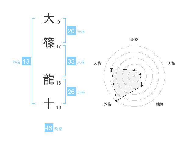 大篠 龍十さんを姓名の画数から五運を鑑定