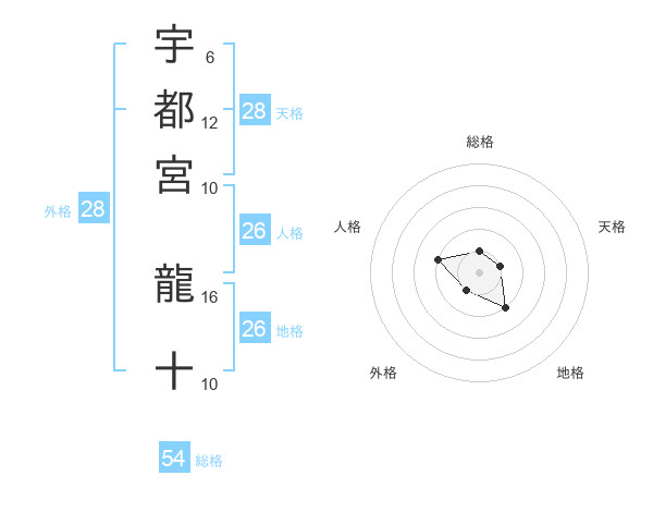 宇都宮 龍十さんを姓名の画数から五運を鑑定