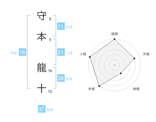 守本 龍十さんの総格は37画の5点!