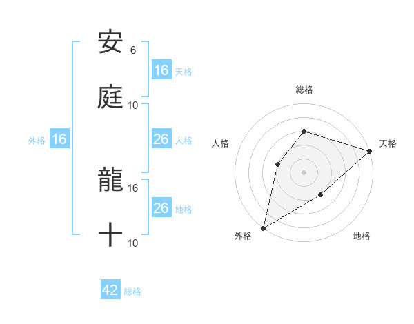 安庭 龍十さんの総格は42画の3点!