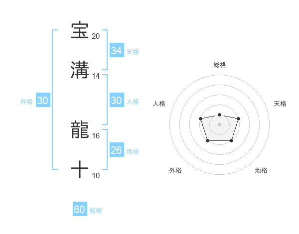 宝溝 龍十さんを姓名の画数から五運を鑑定