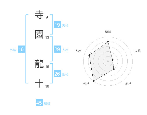 寺園 龍十さんの総格は45画の4点!